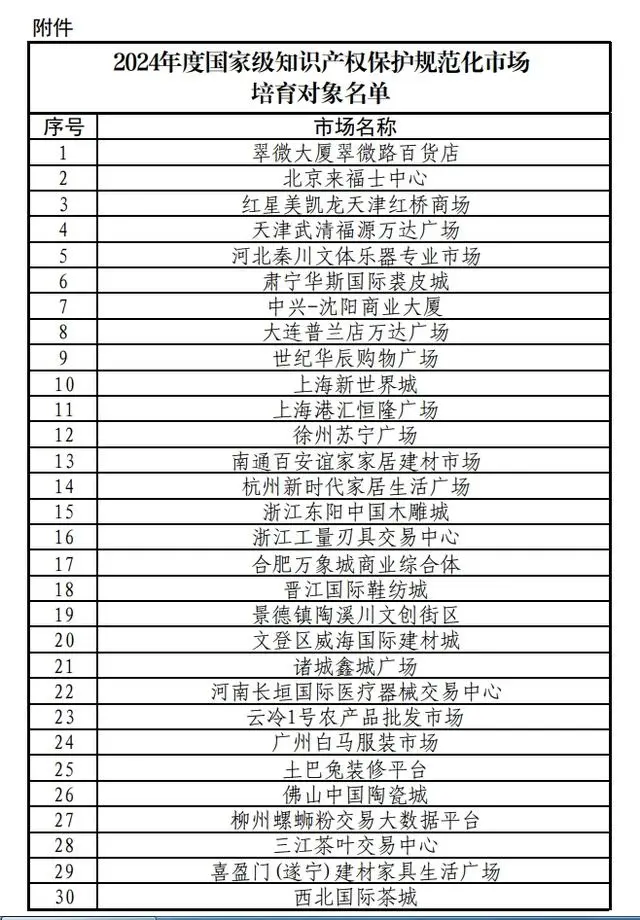 30家上榜!2024年度國(guó)家級(jí)知識(shí)產(chǎn)權(quán)保護(hù)規(guī)范化市場(chǎng)培育對(duì)象名單公布