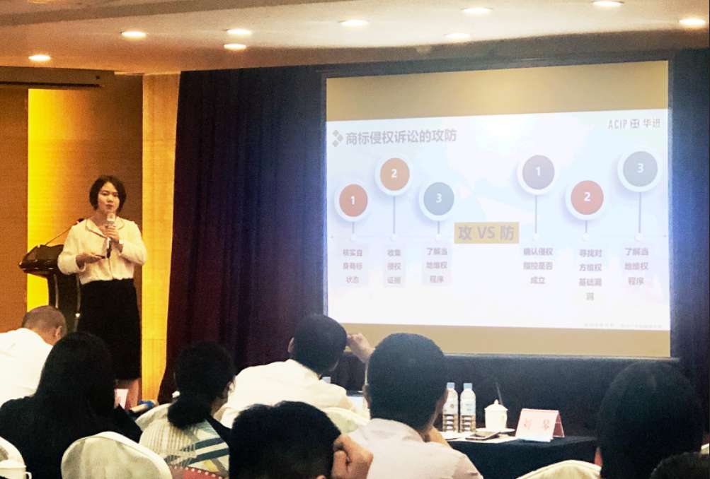 “一帶一路”國(guó)際知識(shí)產(chǎn)權(quán)制度巡回研討會(huì) “一帶一路”倡議自2013年提出以來,經(jīng)過7年的發(fā)展和深化,現(xiàn)已成為構(gòu)建人類命運(yùn)共同體的偉大實(shí)踐,不少中國(guó)企業(yè)積極探索,闖出了一片廣闊的市場(chǎng)前景。中國(guó)企業(yè)該如何把握機(jī)遇?作為企業(yè)發(fā)展海外市場(chǎng)的法律排頭兵——商標(biāo),2020年9月23日下午,由廣州中新知識(shí)產(chǎn)權(quán)服務(wù)有限公司和廣州生產(chǎn)力促進(jìn)中心主辦的“一帶一路”國(guó)際知識(shí)產(chǎn)權(quán)制度巡回研討會(huì)在廣東大廈圓滿舉辦。在此次研討會(huì)上,為幫助與會(huì)企業(yè)與嘉賓從商標(biāo)的角度解析“一帶一路”企業(yè)發(fā)展策略,華進(jìn)商標(biāo)事業(yè)部副總監(jiān)劉琴進(jìn)行了題為《一帶一路背景下,出海企業(yè)的商標(biāo)布局戰(zhàn)略與風(fēng)險(xiǎn)防控》的分享。作為深耕商標(biāo)行業(yè)多年的資深知識(shí)產(chǎn)權(quán)從業(yè)者,劉琴老師在商標(biāo)確權(quán)用權(quán)維權(quán)方面擁有深刻而獨(dú)特的見解,本次她首先介紹了“一帶一路”倡議的含義及由來,同時(shí)引用了商務(wù)部最新公布的數(shù)據(jù),說明沿線國(guó)家有著極為廣闊的市場(chǎng)前景,提醒企業(yè)在抓住政策紅利,出海遠(yuǎn)航的同時(shí),更應(yīng)注意到涉外商標(biāo)布局正成為企業(yè)擴(kuò)展海外市場(chǎng)的重中之重!隨后,劉琴老師以“市場(chǎng)未動(dòng),商標(biāo)先行”作為切入點(diǎn),從商標(biāo)布局及風(fēng)險(xiǎn)防控兩個(gè)方面,分享了“企業(yè)商標(biāo)出海時(shí)需要知道的那些事”。