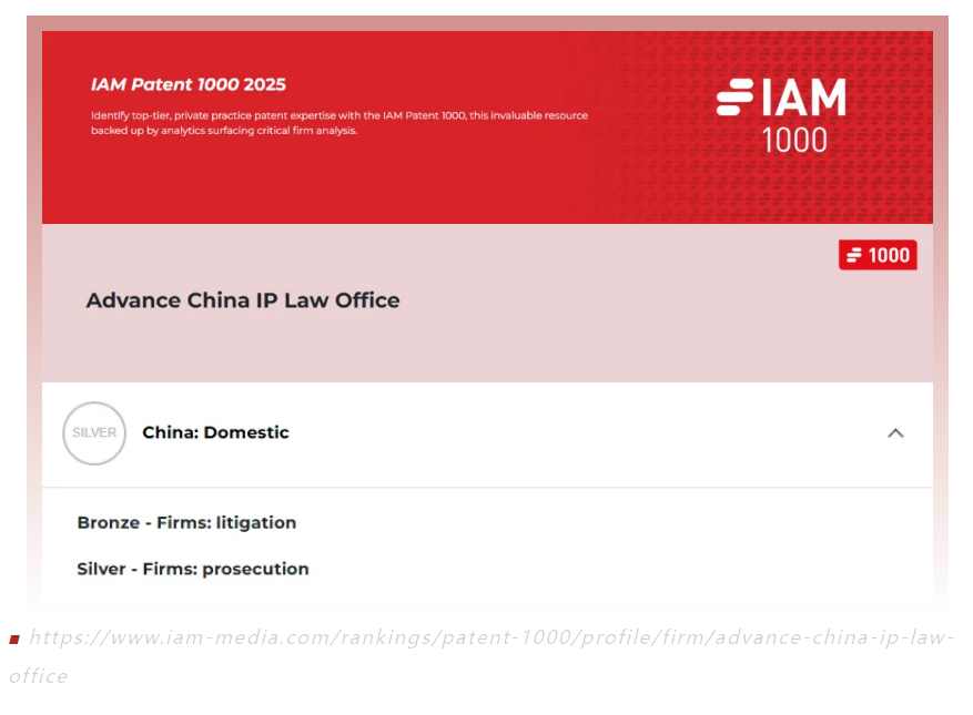 近日,國際知名知識產(chǎn)權(quán)媒體《知識產(chǎn)權(quán)管理》(Intellectual Asset Management, IAM)公布了2025年度全球?qū)@?000強(qiáng)榜單(IAM Patent 1000)。華進(jìn)知識產(chǎn)權(quán)憑借在專利代理服務(wù)領(lǐng)域的綜合能力,再次榮登中國-國內(nèi)所(CHINA: DOMESTIC)榜單,獲得專利申請領(lǐng)域銀牌評級(Silver - Firms: prosecution)以及專利訴訟領(lǐng)域銅牌評級(Bronze - Firms: litigation),這是自2019年以來華進(jìn)第7年上榜。