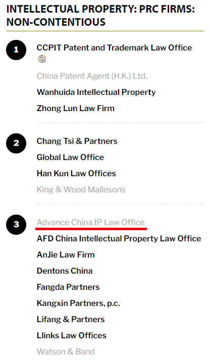 INTELLECTUAL PROPERTY: PRC FIRMS: NON-CONTENTIOUS
